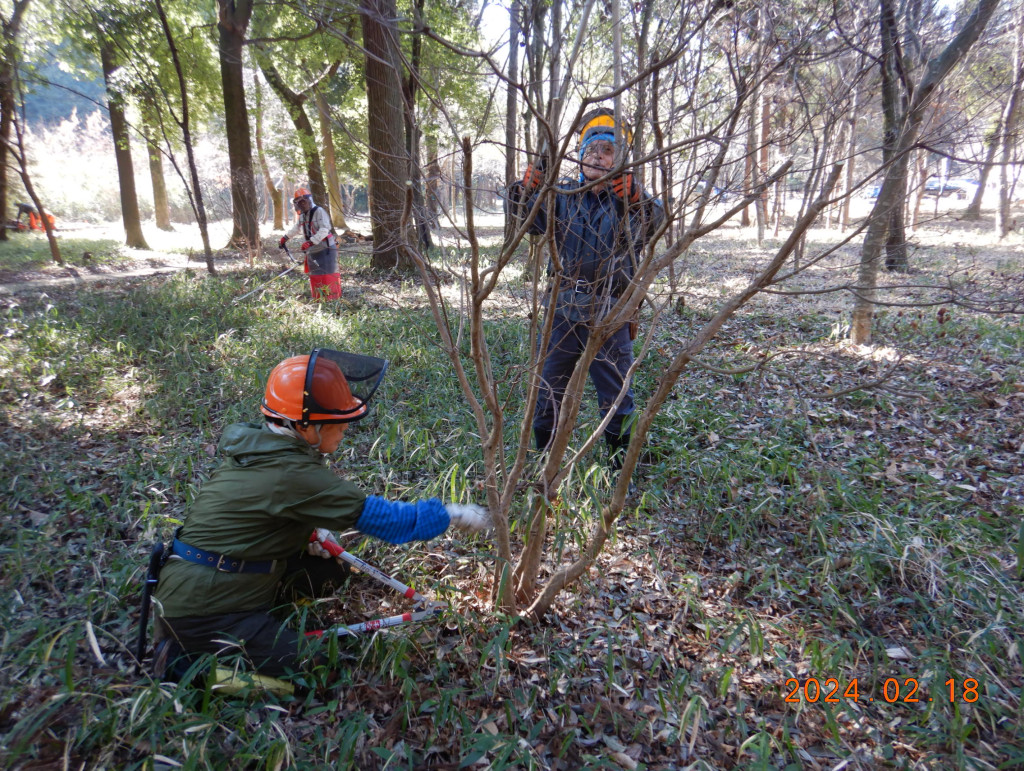 本活動では、市有林整備活動(筑波山・四季の道、高崎自然の森)として、下草刈り、剪定、枝打ち、植樹、間伐など技術習得を安全第一に心掛けて、怪我無く楽しく行っています。